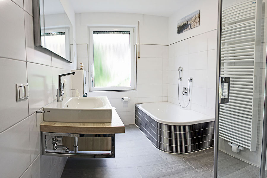 • Hochwertiges Bad mit Badewanne und Dusche