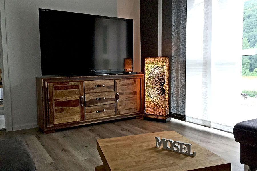 Wenn Sie für Ihren Aufenthalt an der Untermosel ein großzügig geschnittenes Domizil suchen, ist diese Ferienwohnung genau das Richtige für Sie. Mit zwei Schlafzimmern und insgesamt 105 Quadratmetern Wohnfläche, gibt es ausreichend Platz für bis zu sechs Personen (4 Erwachsene und 2 Kinder bis zum Alter von 3 Jahren). Direkt an der Mosel gelegen, können Sie von der großen Loggia aus den Fluss und die Landschaft bei jedem Wetter und natürlich auch zu jeder Jahreszeit genießen. Neben der exklusiven Lage, vermag die Wohnung auch durch ihren gehobenen Standard zu überzeugen. Ihre hellen und großen Räume laden zum relaxen ein und in der voll ausgestatteten, modernen Küche können Sie ein leckeres Abendessen zubereiten, ganz so als wären Sie zu Hause. Von Ihrem Feriendomizil im Haus Josef aus können Sie nicht nur den beschaulichen Weinort Klotten erkunden, sondern auch ins nahegelege Cochem fahren oder andere Touren in die kulturell und landschaftlich reizvolle Umgebung unternehmen.