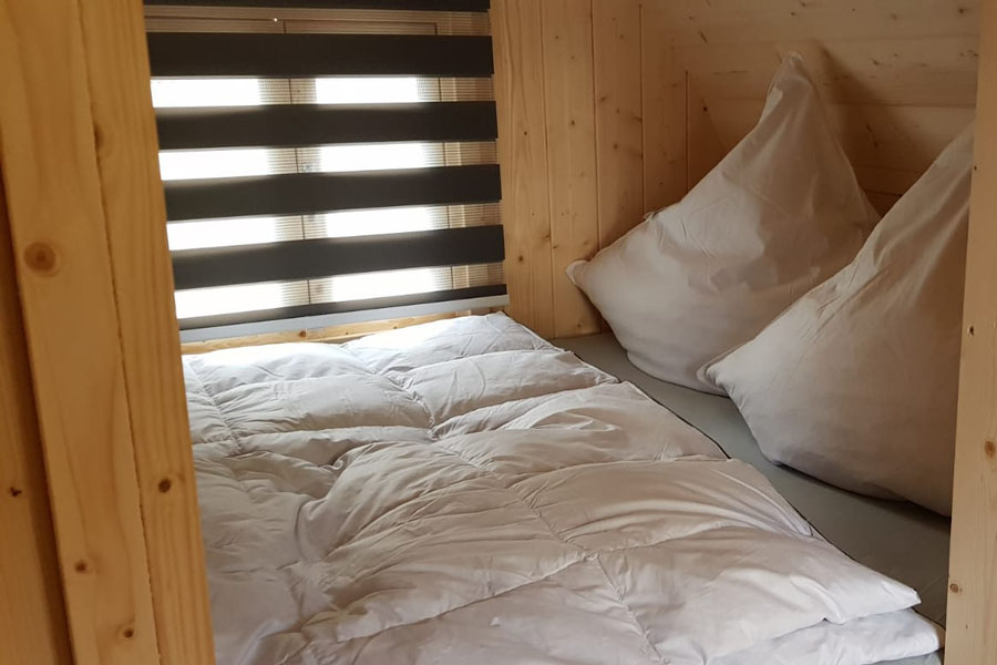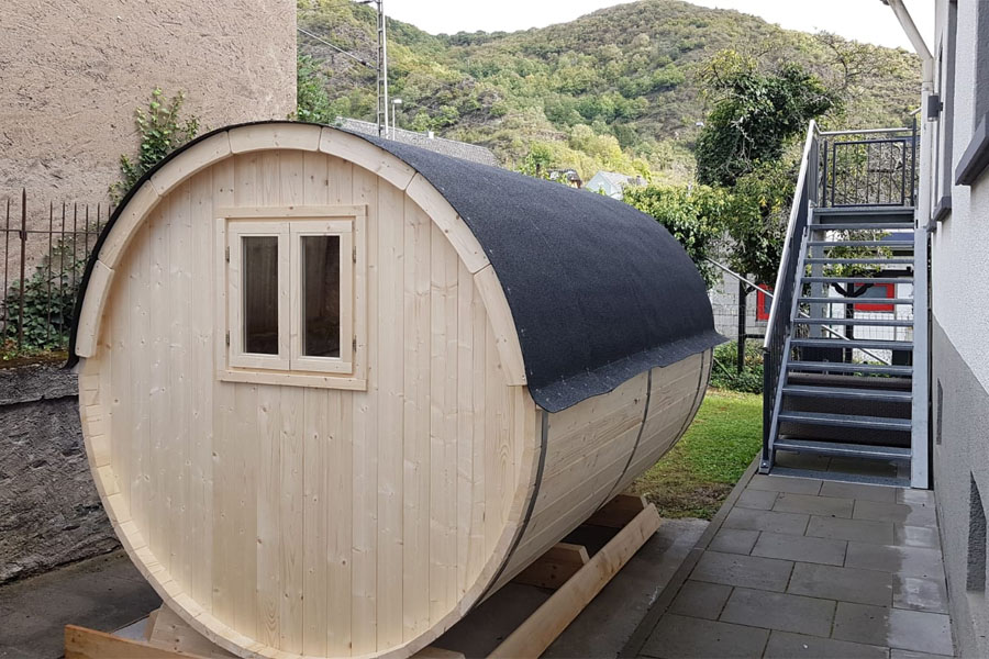 Optional zu Ihrer Ferienwohnung hinzubuchbar ist eine Übernachtungsmöglickeit im Stil eines Weinfasses. Der Schlafplatz bietet ausreichend Platz für 1 Erwachsenen oder 2 Kinder.