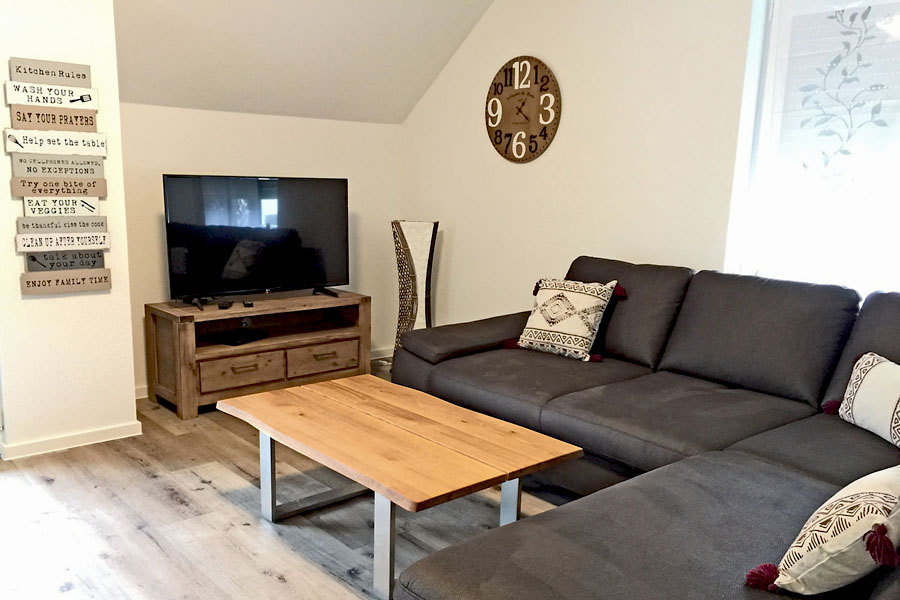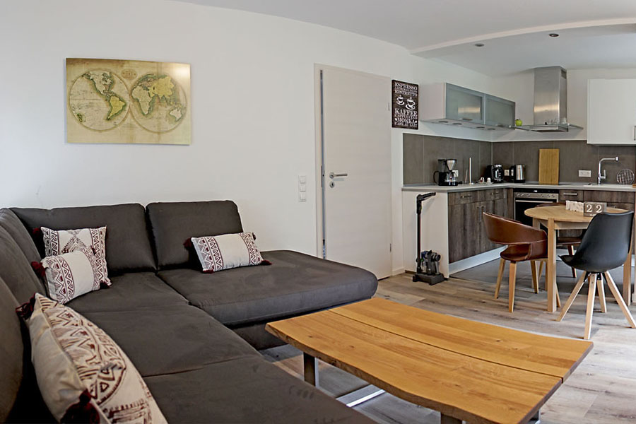 Die Ferienwohnung kann mit bis zu 3 Erwachsenen oder 2 Erwachsenen und 2 Kindern belegt werden. Dabei dient die ausziehbare Couch als zusätzliche Schlafgelegenheit. Hunde sind bis zu einem Gewicht von 5 Kilogramm erlaubt und kosten 5 Euro zusätzlich pro Tag.